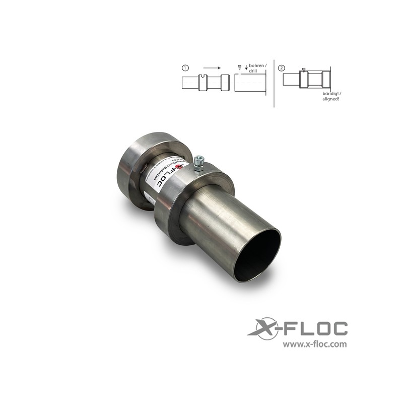 - Zur Einpassung muss bei Nachrüstungen gegebenenfalls die innenliegende Schweißnaht des Ausblasstutzens an der Einblasmaschine abgeschliffen werden.