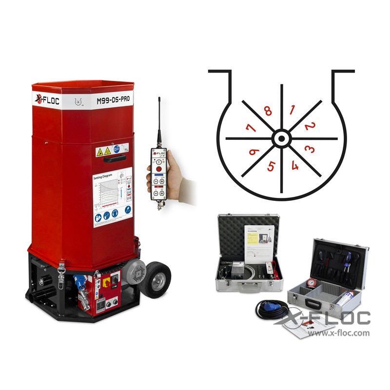 Machine for processing certified loose insulation material up to a packing density of approx. 155kg/m³ or loose bulkware up to 100kg/m³ bulk density. Authorised (CE) in all EU member states aswell as in Switzerland.